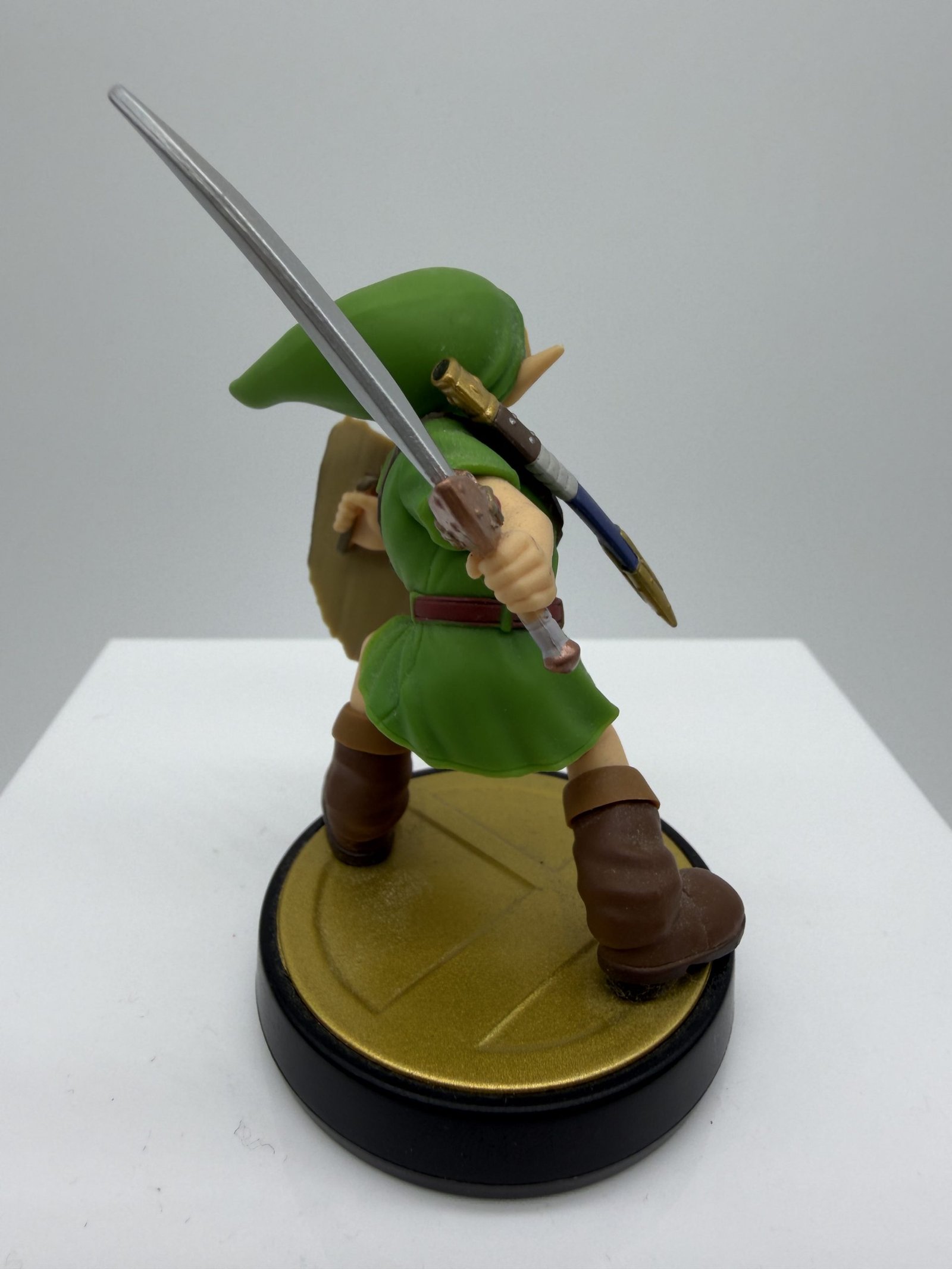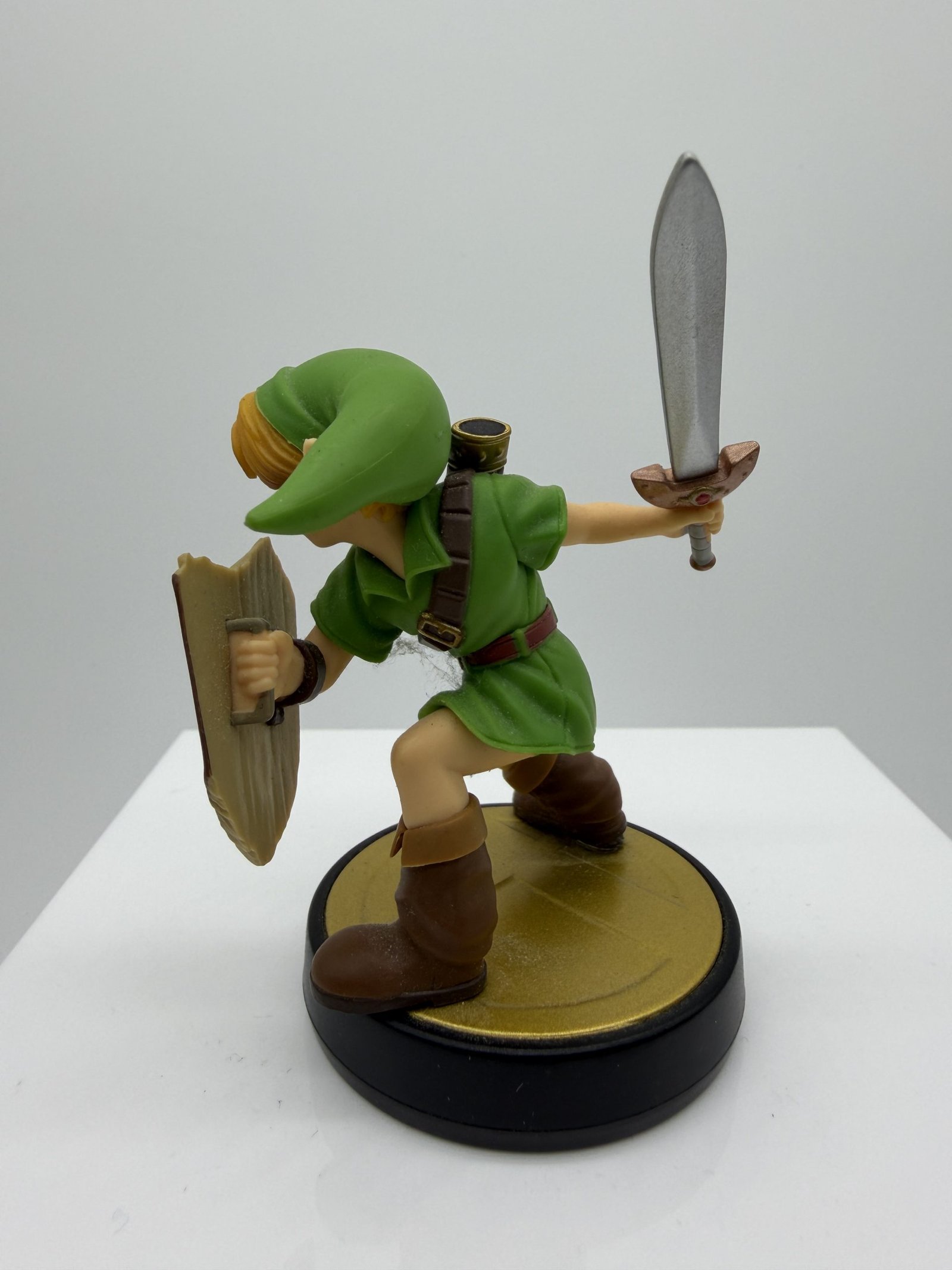 La figura de Amiibo representa a Link Joven, inspirada en su apariencia de Ocarina of Time y Majora’s Mask, con pose de combate con Espada Kokiri y Escudo Deku, ideal para los coleccionistas de Super Smash Bros.