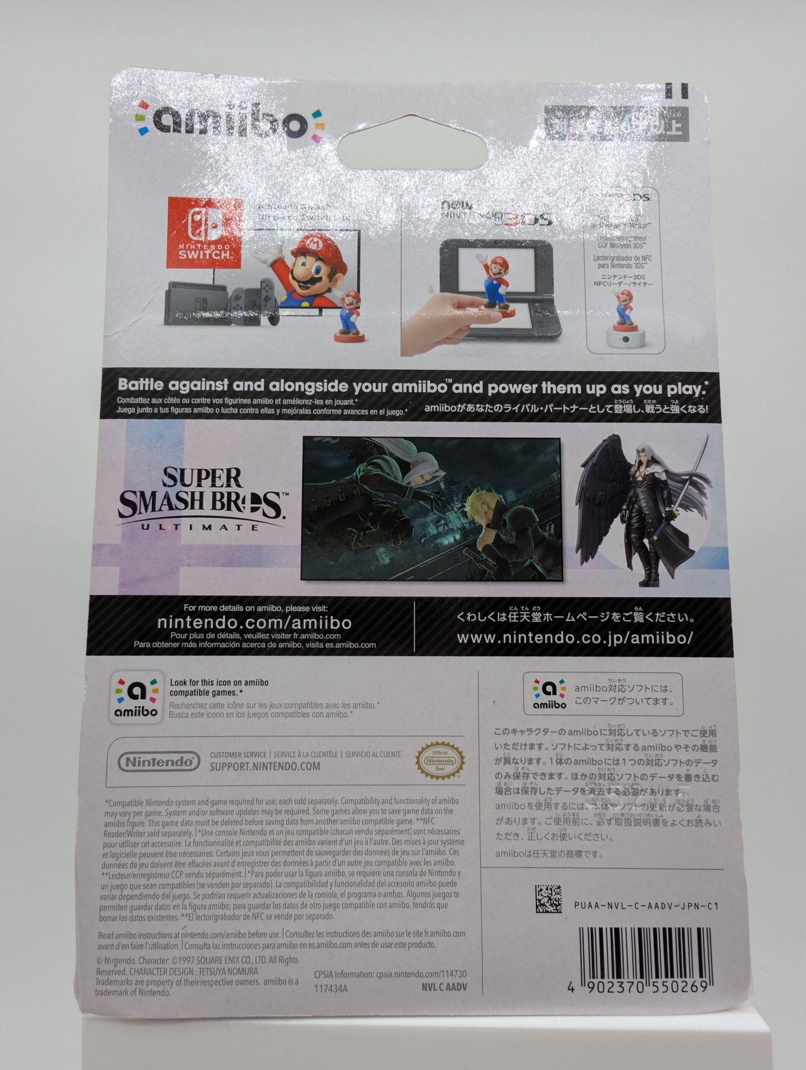 La figura de Amiibo presenta a Sephiroth en su icónica versión de Super Smash Bros Ultimate, capturando su elegancia oscura y su poder inigualable. Una pieza de Nintendo que combina detalle, estilo y funcionalidad NFC para los fanáticos del universo de Smash.
