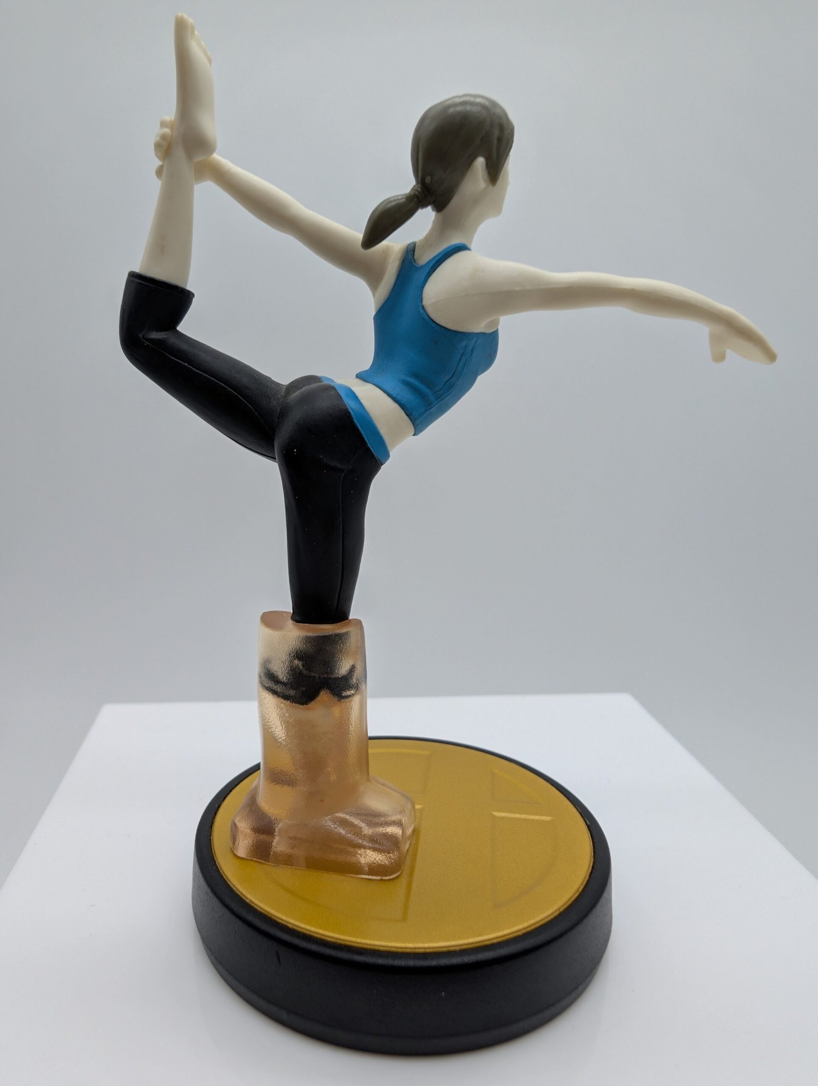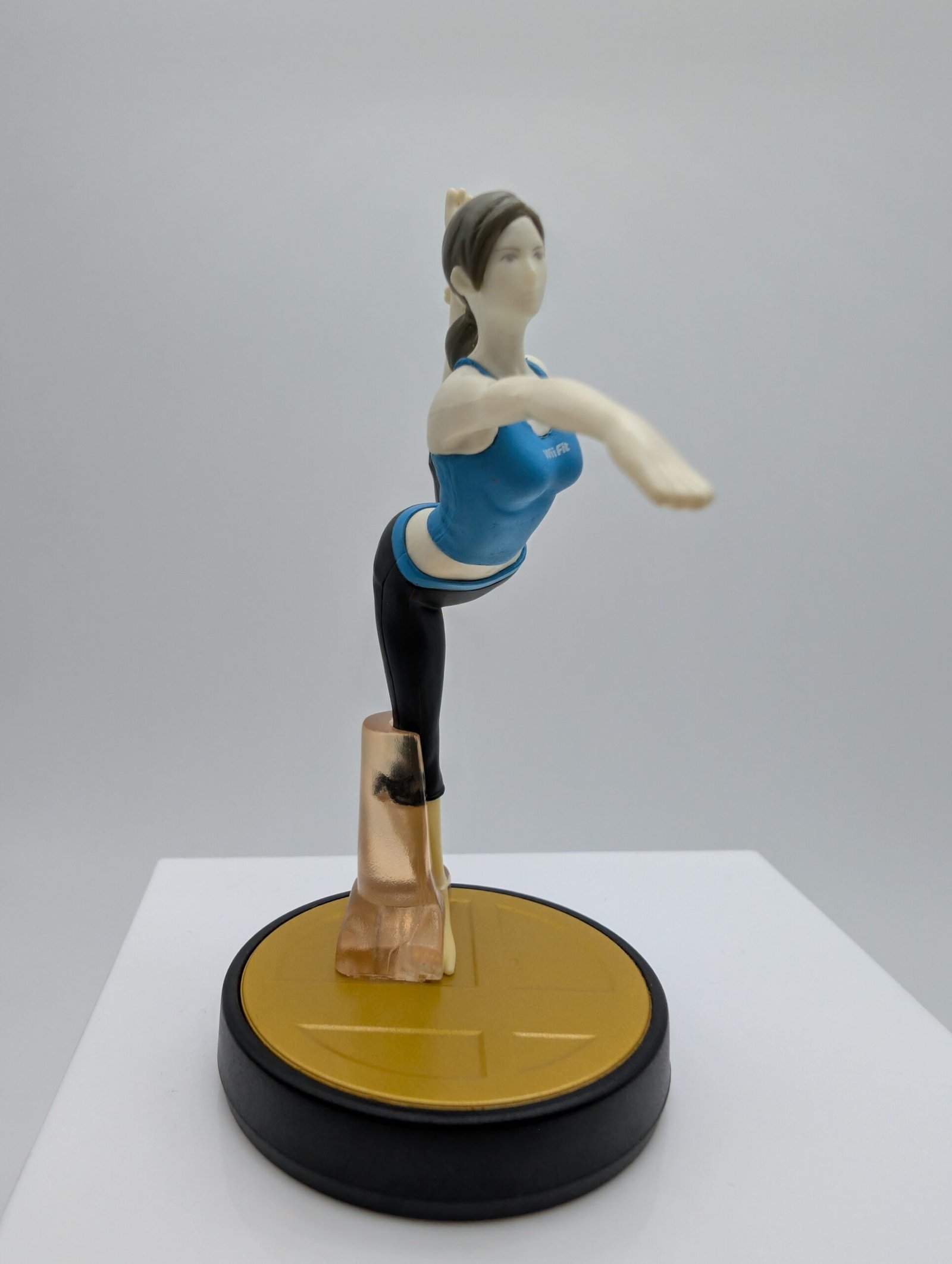 La figura de Amiibo de la colección Super Smash Bros muestra a Wii Fit Trainer, destacando por su diseño detallado y la precisión en la escultura del personaje.
