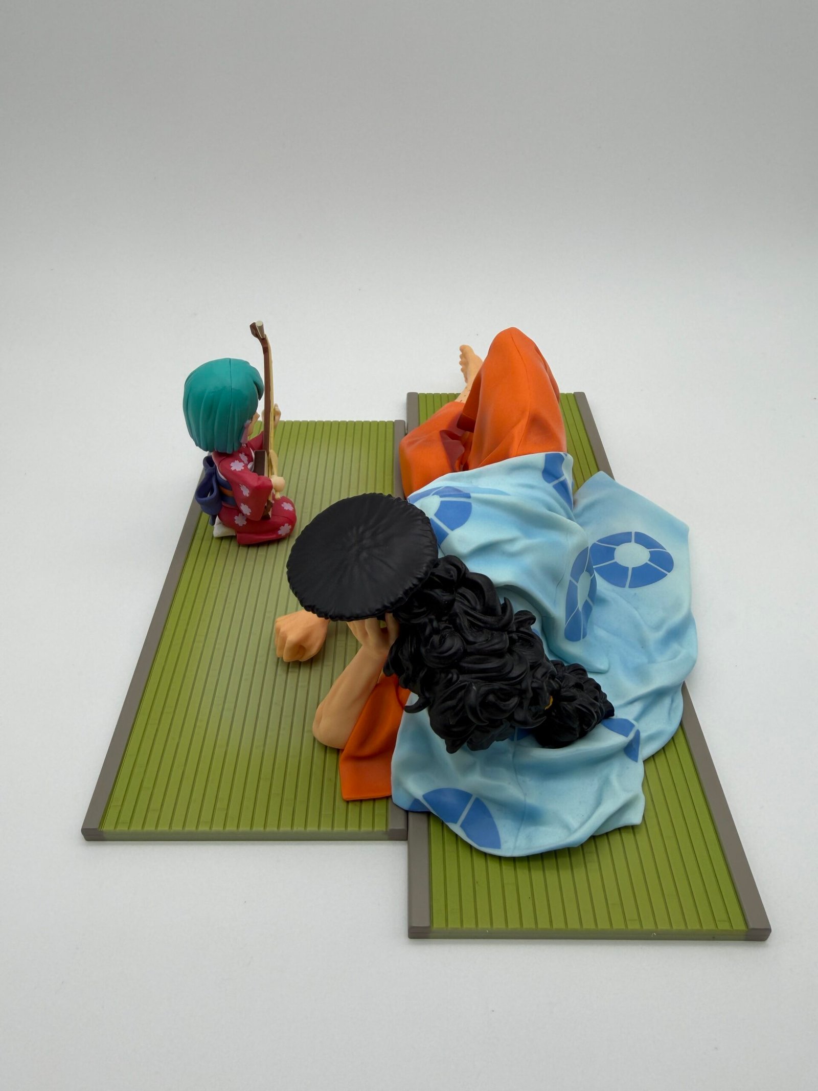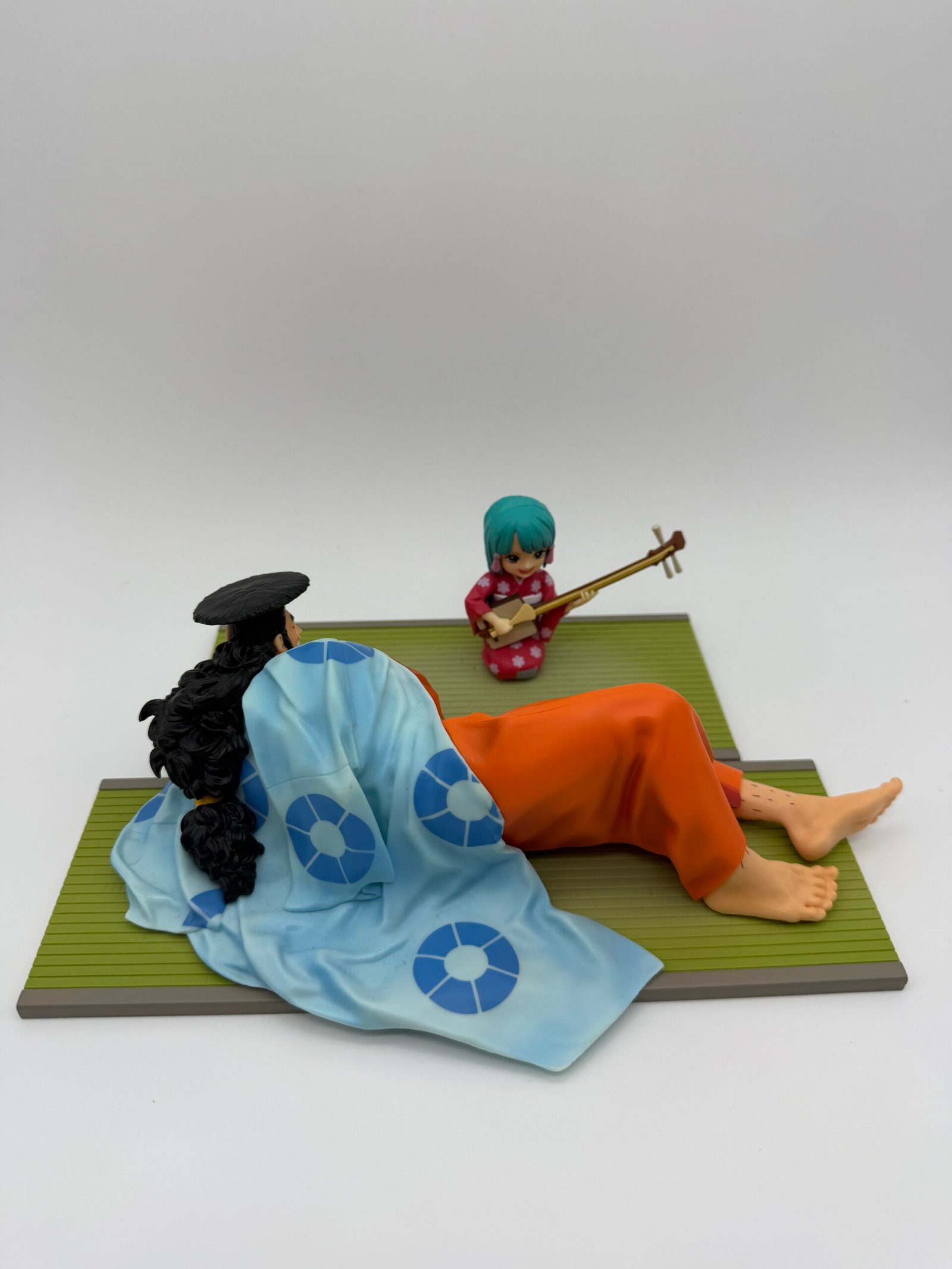 Este impresionante dúo de Kozuki Oden y Kozuki Hiyori de Bandai, con 6 cm de altura, inmortaliza una conmovedora escena familiar de One Piece. La figura captura a Hiyori tocando un instrumento para su padre, evocando la conexión profunda y el legado histórico del clan Kozuki.