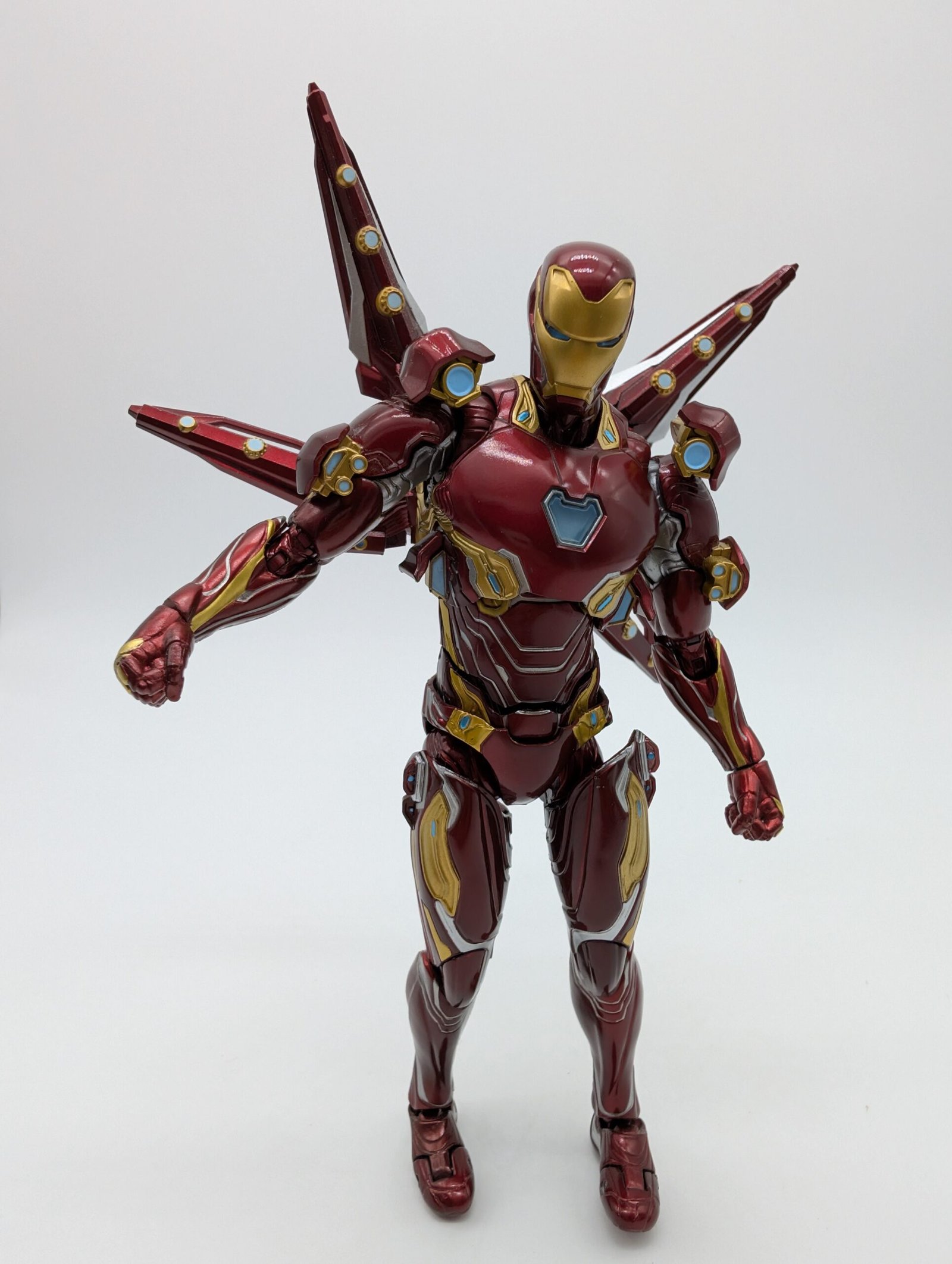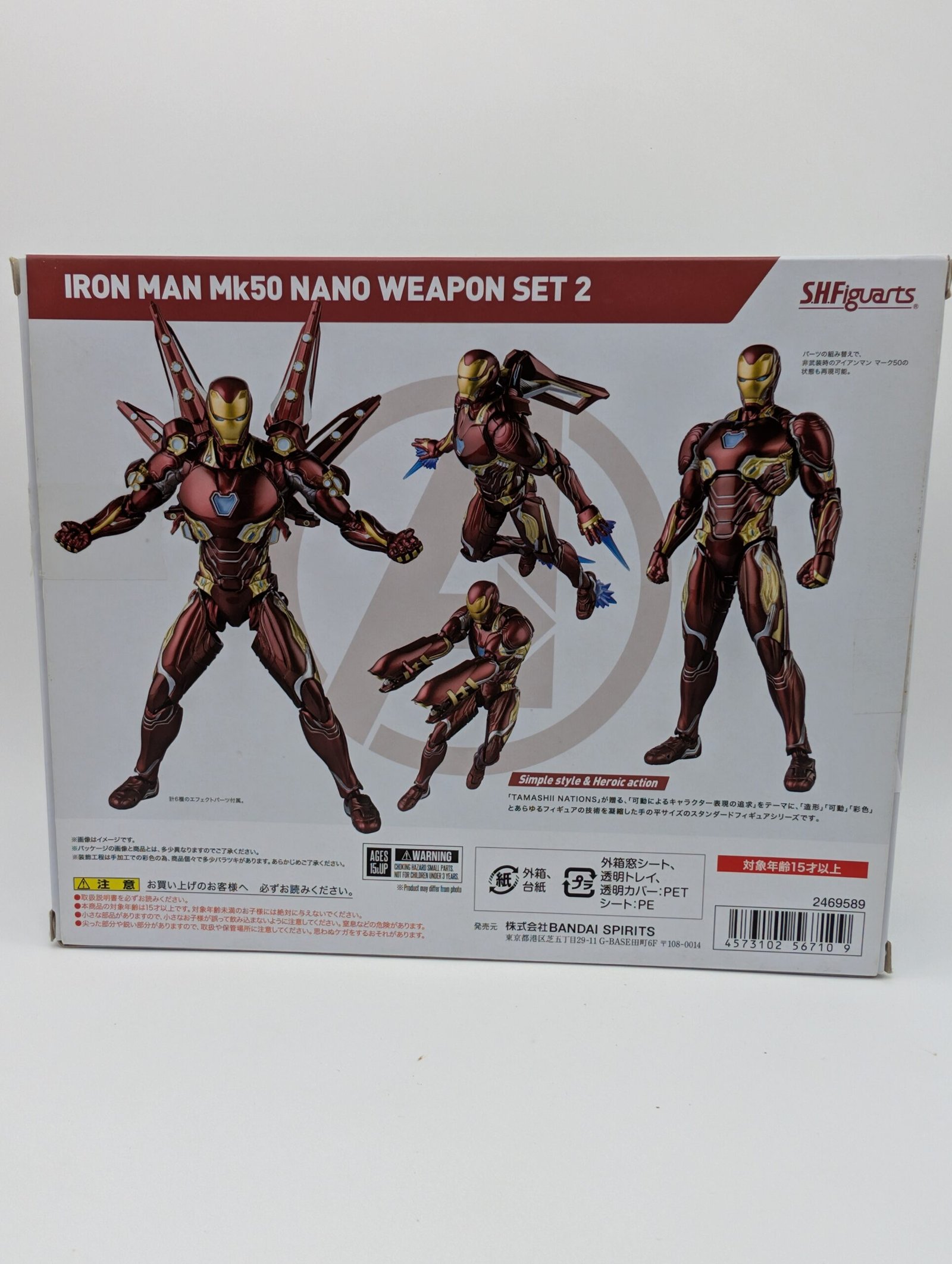 Bandai presenta al icónico Iron Man Mark 50, el traje de nanotecnología de Infinity War y usado en Endgame. Esta figura de 15 cm, altamente articulada, se distingue por el diseño elegante y aerodinámico del Nanosuit. Incluye varios efectos repulsores y, dependiendo de la versión, accesorios de armamento nanotecnológico (como espadas, escudos o cañones) que emergen directamente del traje.
