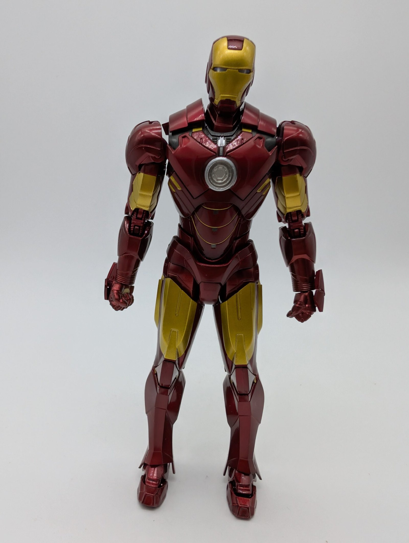 Bandai trae al Iron Man Mark VI de Iron Man 2. Esta figura premium de 17 cm es altamente articulada y fabricada en PVC/ABS con partes de Die-Cast. Destaca por su espectacular pintura metálica y viene equipada con efectos de repulsor y múltiples manos para lograr cualquier pose de vuelo o ataque. Imprescindible para coleccionistas de Marvel.