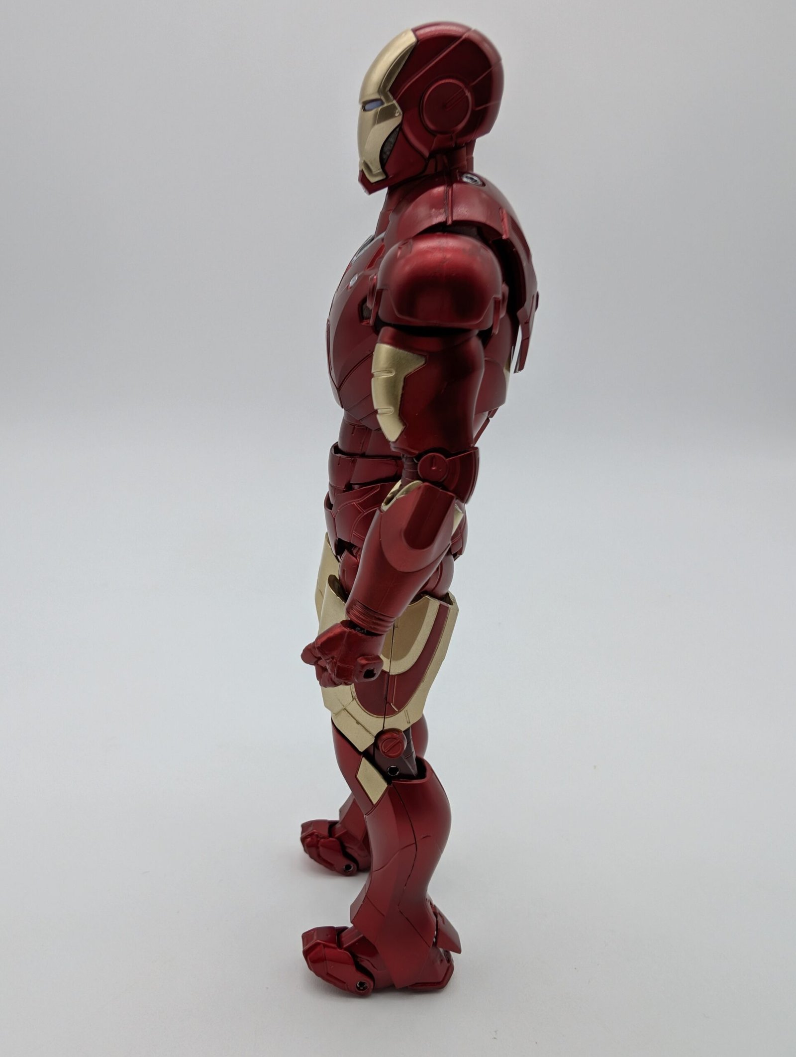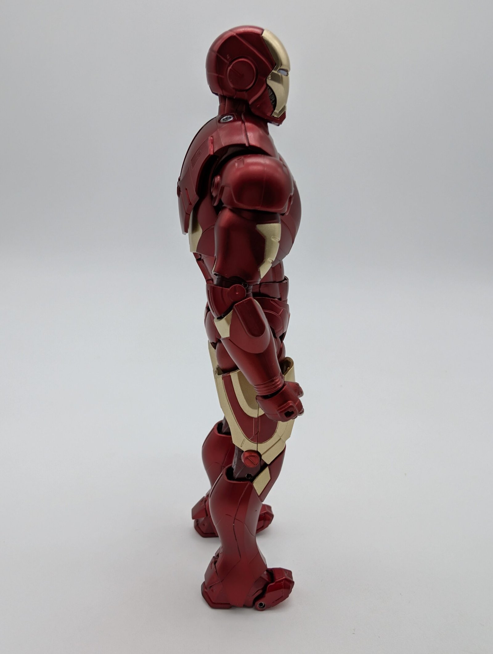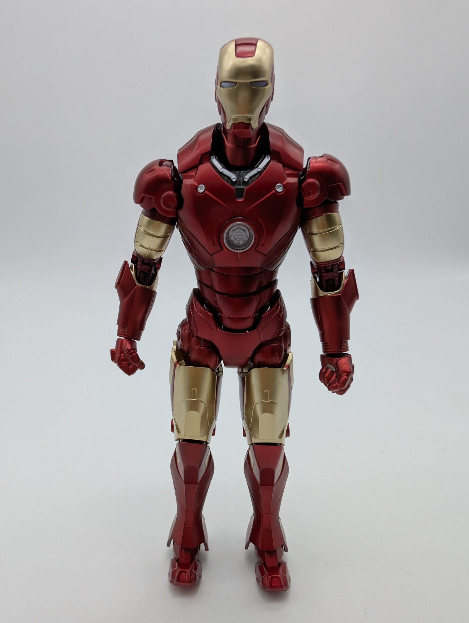 Bandai rinde homenaje al icónico Iron Man Mark III de Iron Man. Esta figura de 15 cm es altamente articulada, presenta un impecable acabado metálico (Die-Cast) en el clásico rojo y dorado. Incluye múltiples manos y efectos de repulsor para replicar la acción de la primera película.