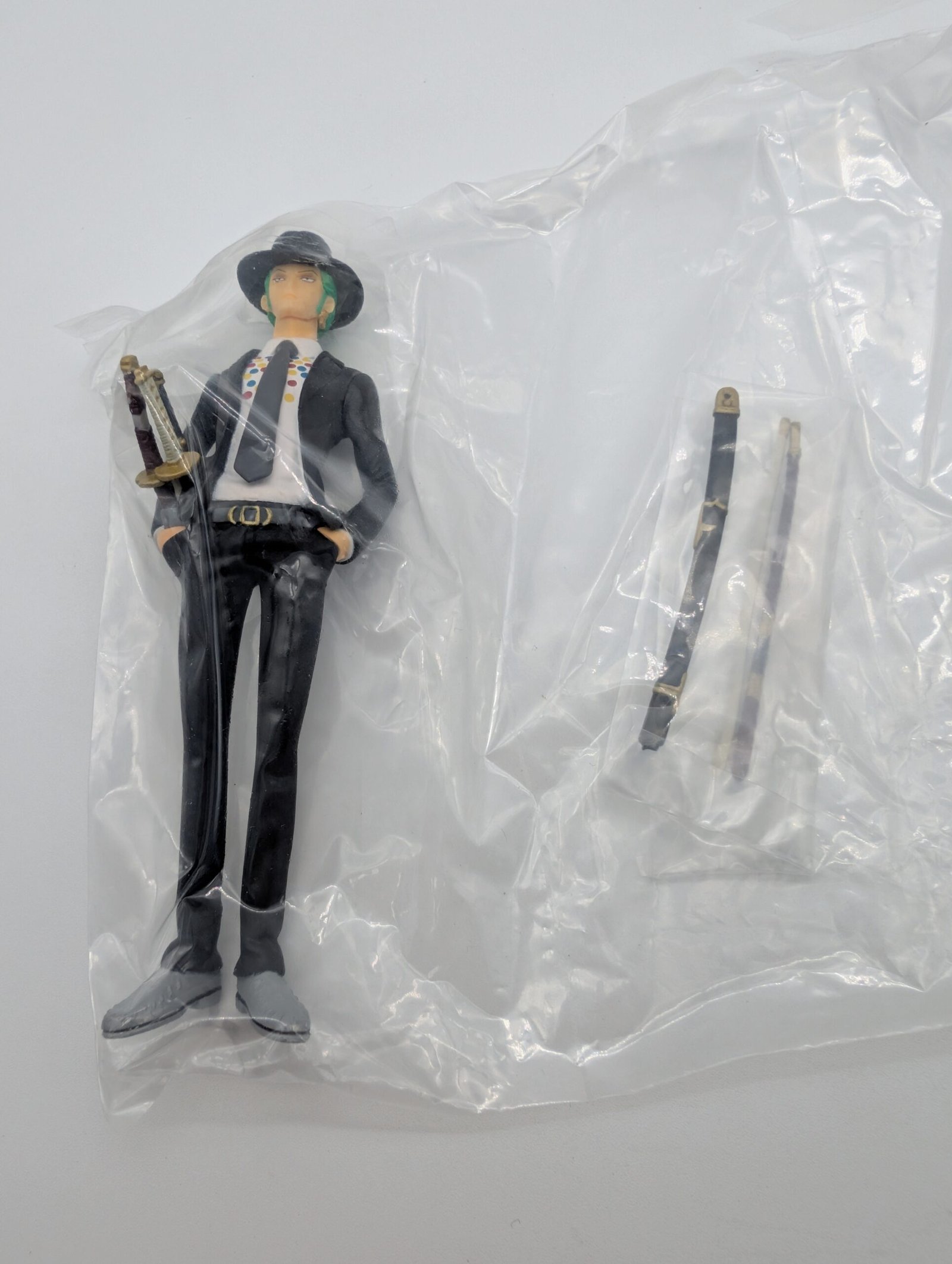 Bandai se complace en anunciar la figura de Roronoa Zoro con su elegante traje, una impresionante pieza de colección. Con una altura aproximada de 15cm, esta figura ha sido meticulosamente diseñada para capturar la inconfundible esencia del espadachin. Es una adición imprescindible que no puede faltar en la vitrina de cualquier auténtico seguidor del universo de One Piece.