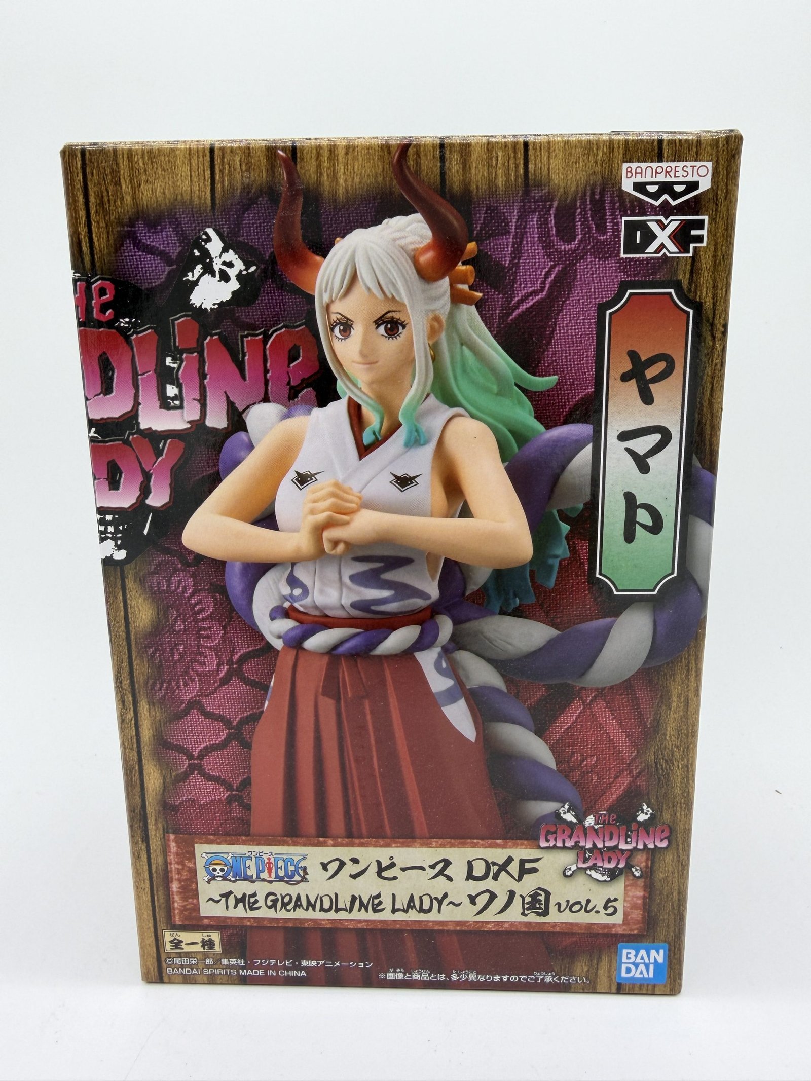 La figura de Banpresto presenta a Yamato en su versión Wano Kuni Vol. 5, perteneciente a la línea DXF The Grandline Lady, con un diseño fiel al arco de Wano dentro de One Piece. Una representación detallada que destaca la estética del personaje y su presencia dentro de la colección.