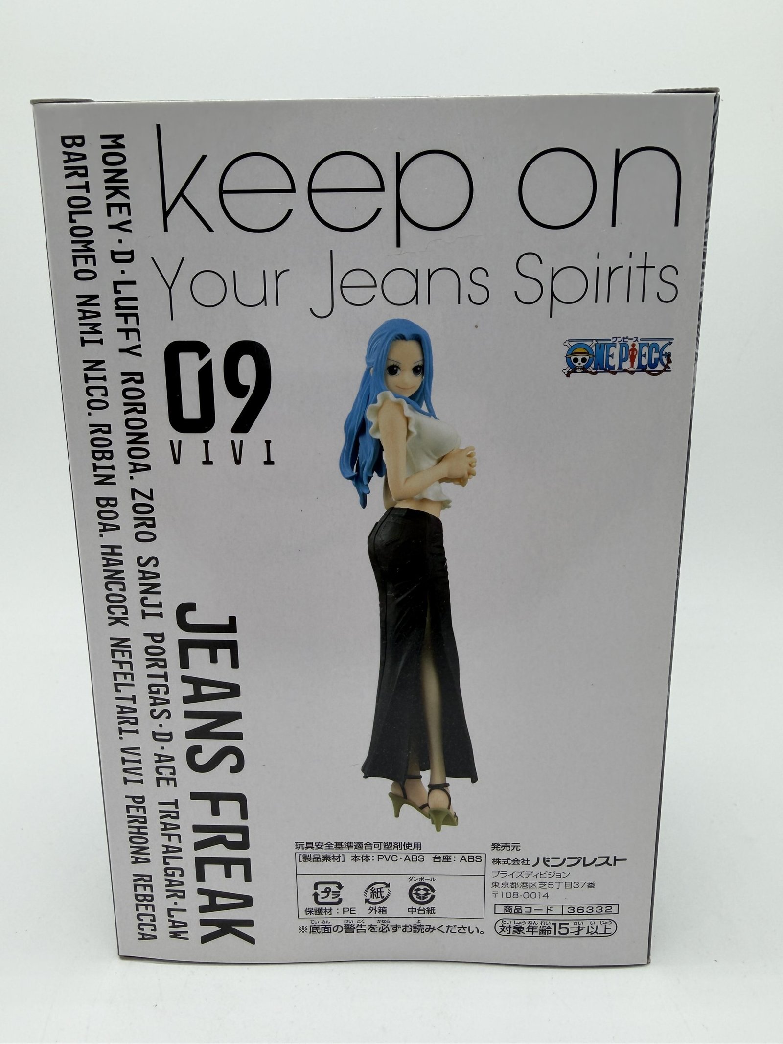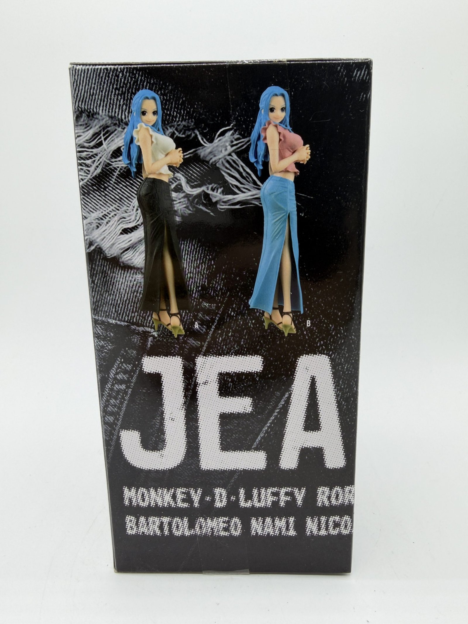 La figura de Banpresto DXF Jeans Freak muestra a Nefertari Vivi con su Fig.9 Versión A, vistiendo una blusa blanca y una falda larga de jean negra. Cada detalle refleja el estilo moderno del personaje, convirtiéndola en un coleccionable atractivo para los fanáticos.