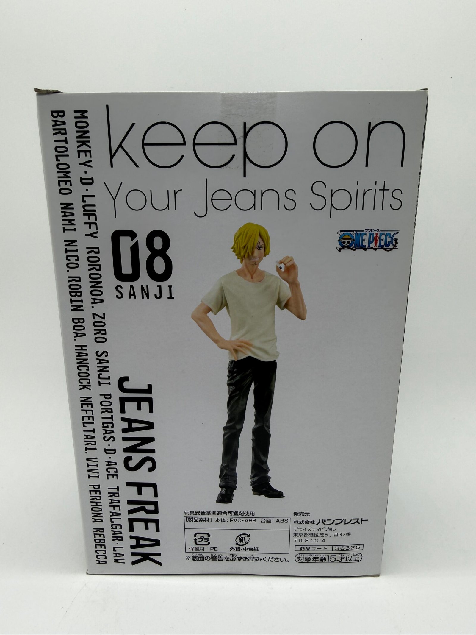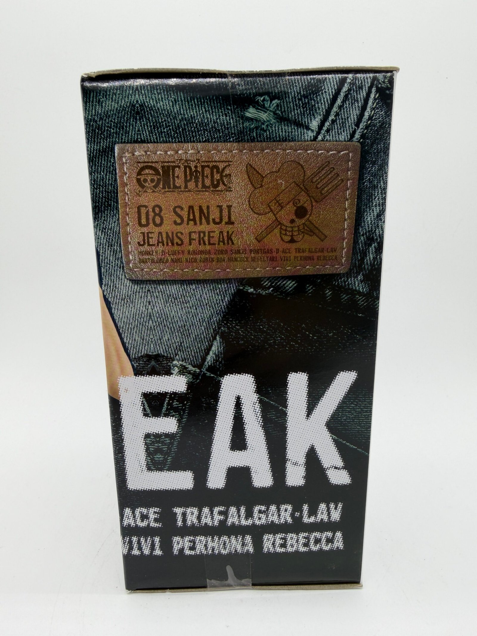 La figura de Banpresto de la línea DXF Jeans Freak presenta a Sanji con jean y su característica camiseta blanca, capturando con detalle su estilo único en One Piece. Su Fig.8 Versión B es ideal para fans y coleccionistas.