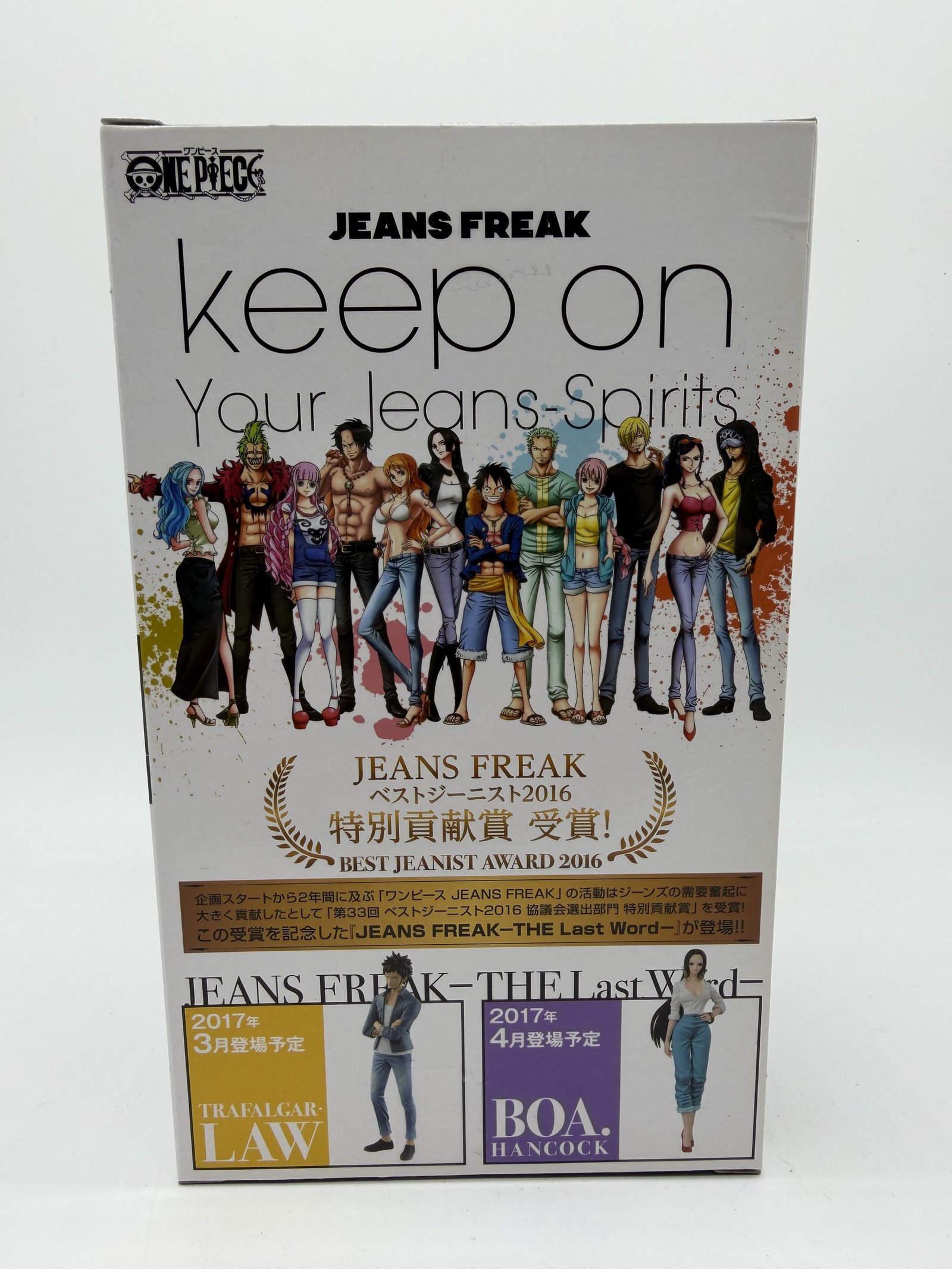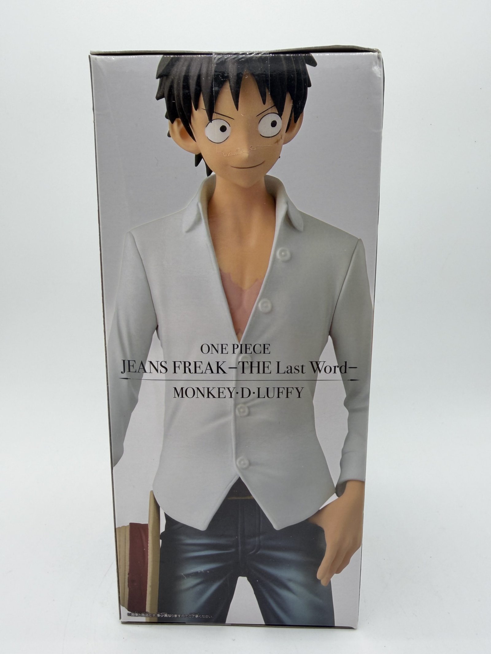 La figura de Banpresto de la línea Jeans Freak – THE Last Word presenta a Monkey D. Luffy en la versión Best Jeanist, celebrando su victoria en el galardón japonés de 2016. Con un atuendo casual que incluye jeans y una camisa blanca, esta pieza coleccionable refleja un estilo único de Luffy, alejado de su clásico look pirata.