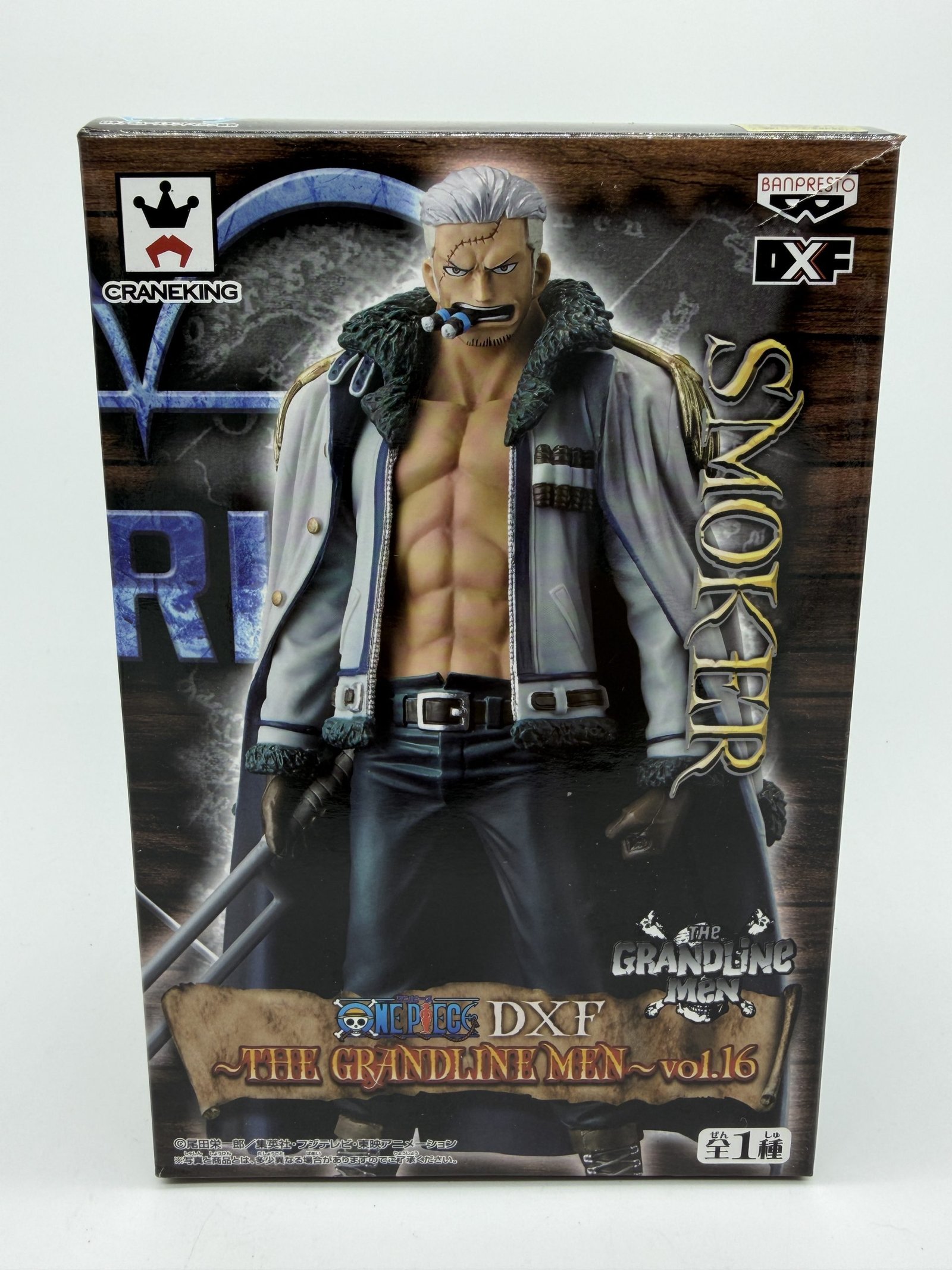 La figura de Banpresto presenta a Smoker en su versión Vol.16, perteneciente a la línea DXF The Grandline Men. Una representación fiel del personaje del universo One Piece, con un diseño que captura su personalidad y presencia característica dentro de la colección.