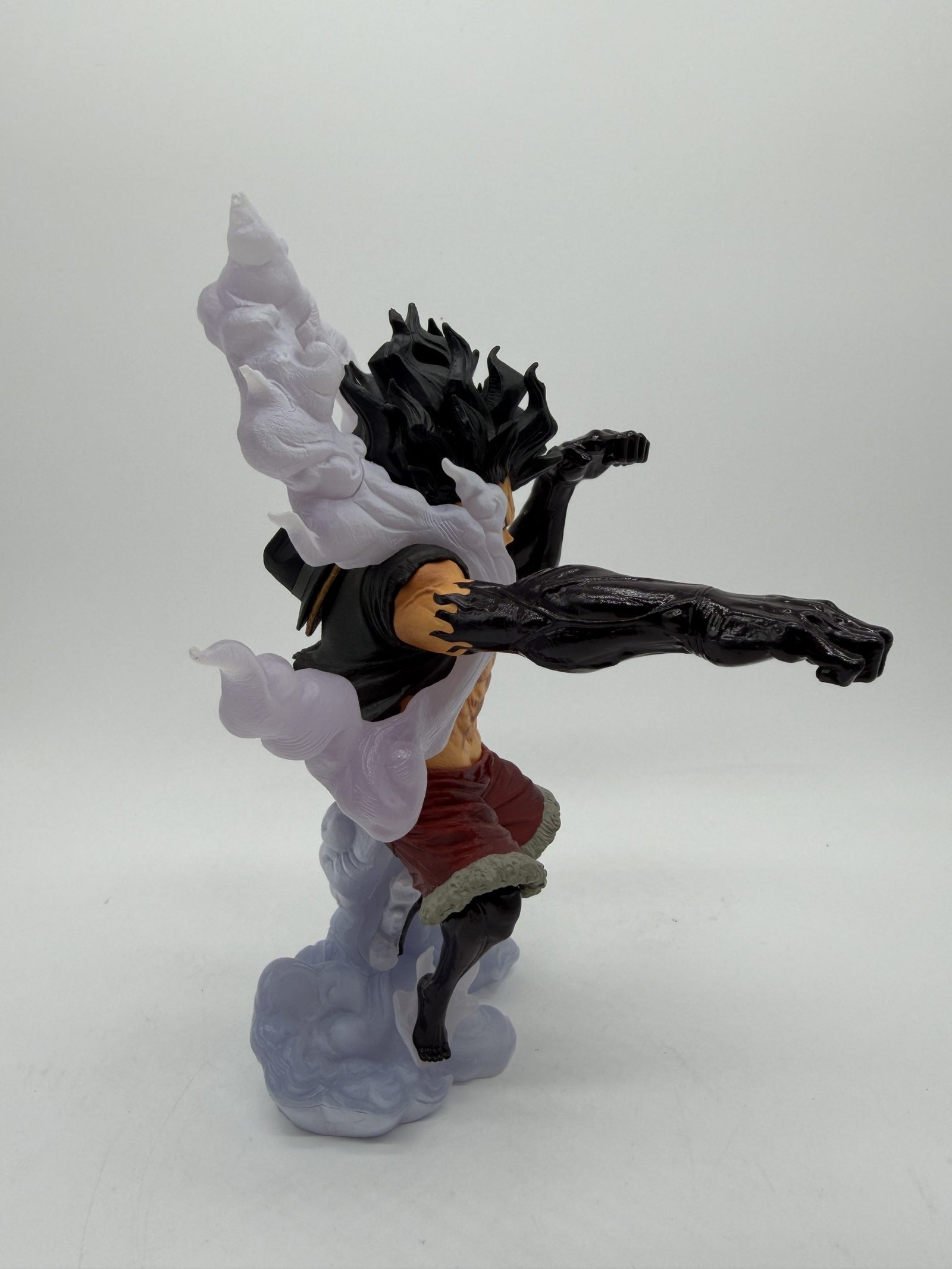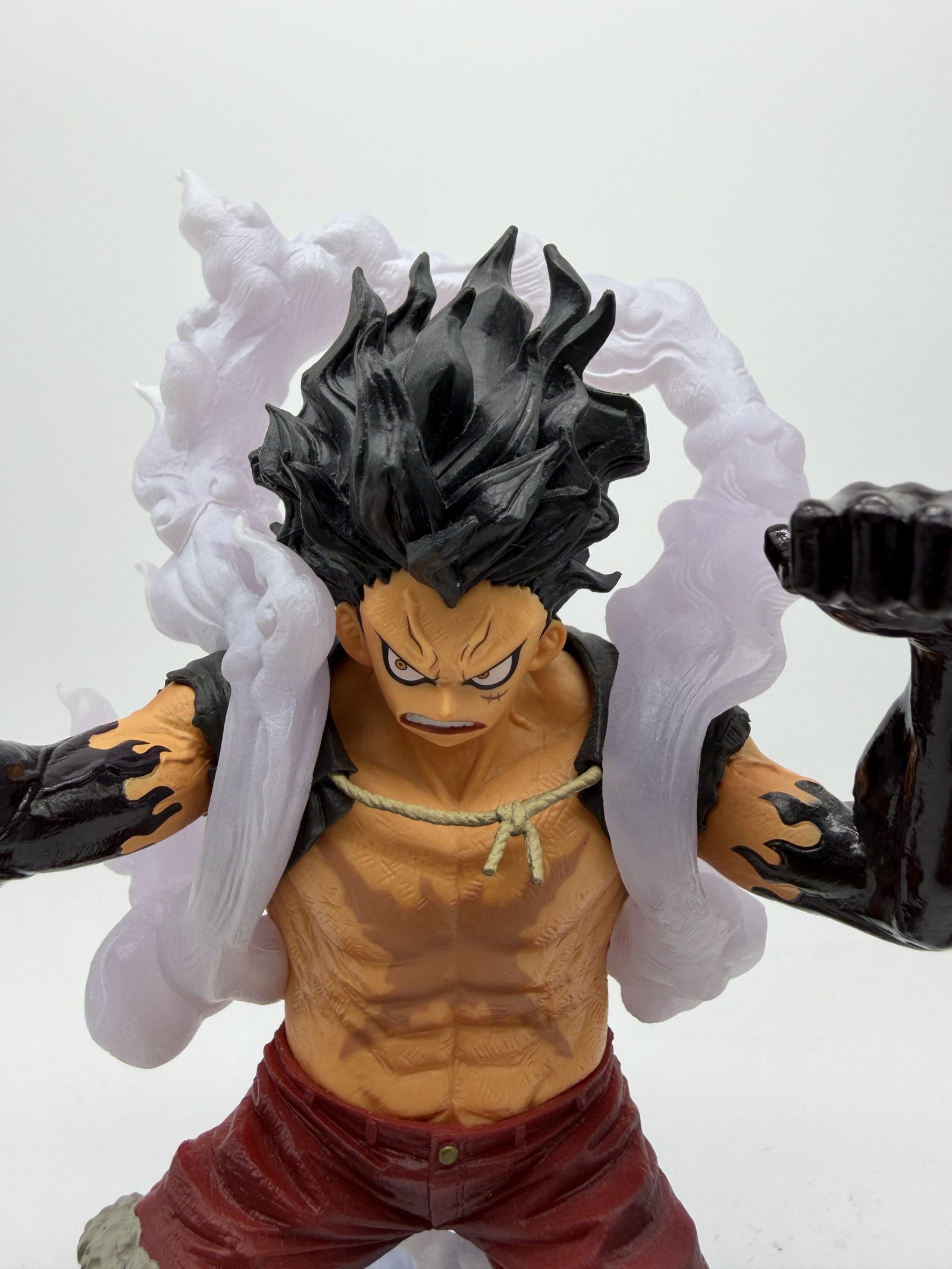 La figura de Banpresto de la línea King of Artist representa a Monkey D. Luffy en su versión Gear 4 Snakeman, con efectos de vapor que reflejan con precisión la intensidad del combate en el arco conmemorativo del anime One Piece, capturando cada detalle y movimiento del personaje.