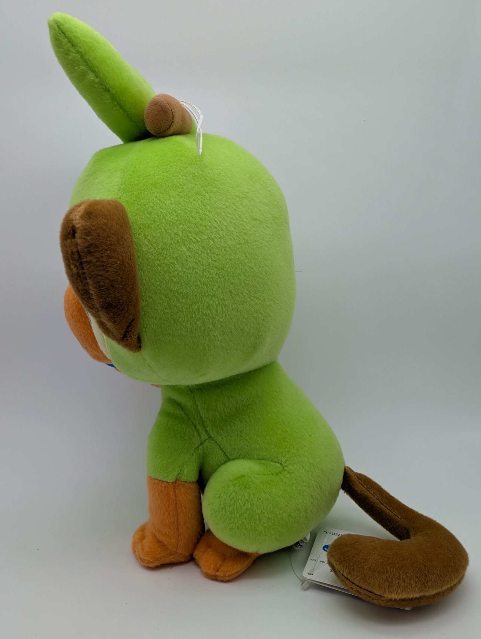 Un peluche coleccionable de Grookey de Pokémon, parte de la línea Mofugutto Plush de Banpresto.