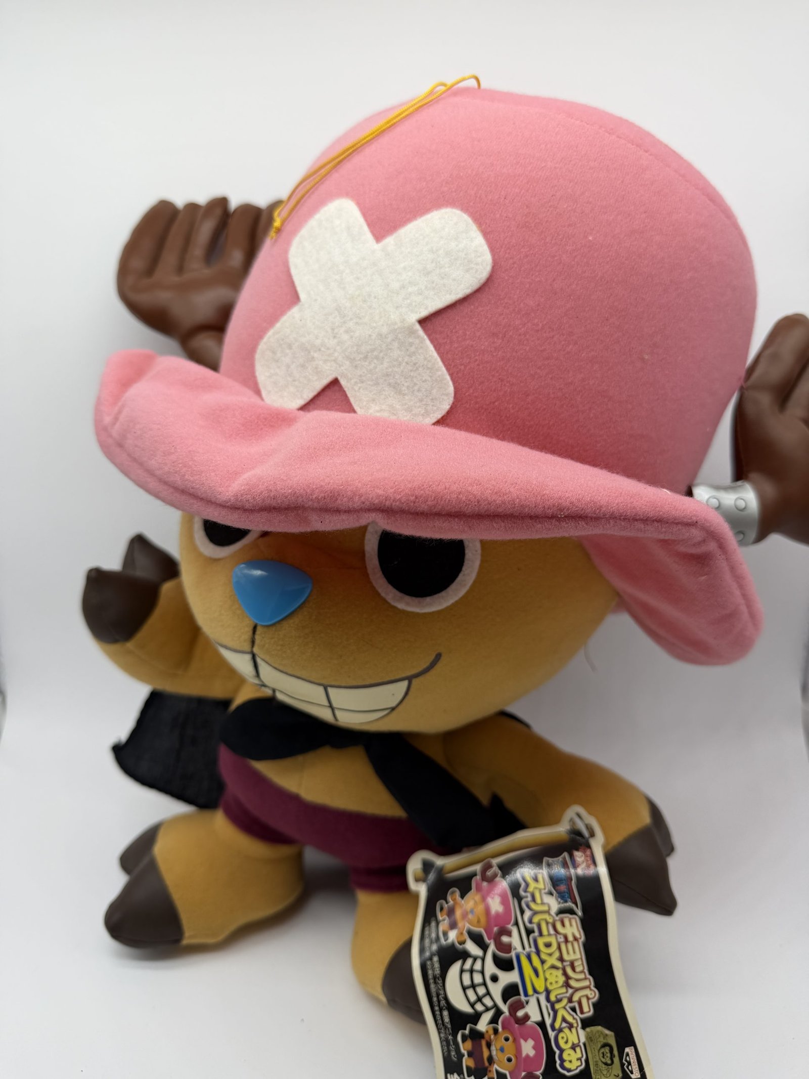 ¡Siente el poder de la voluntad de D. en un formato irresistible! No dejes pasar este increíble peluche de 30 cm diseñado por Banpresto. Como parte de la prestigiosa línea Super DX Plush, esta versión de Tony Tony Chopper destaca por su diseño premium y ese estilo único que solo los Sombrero de Paja lucen, integrando de forma magistral la icónica bandera pirata de One Piece.