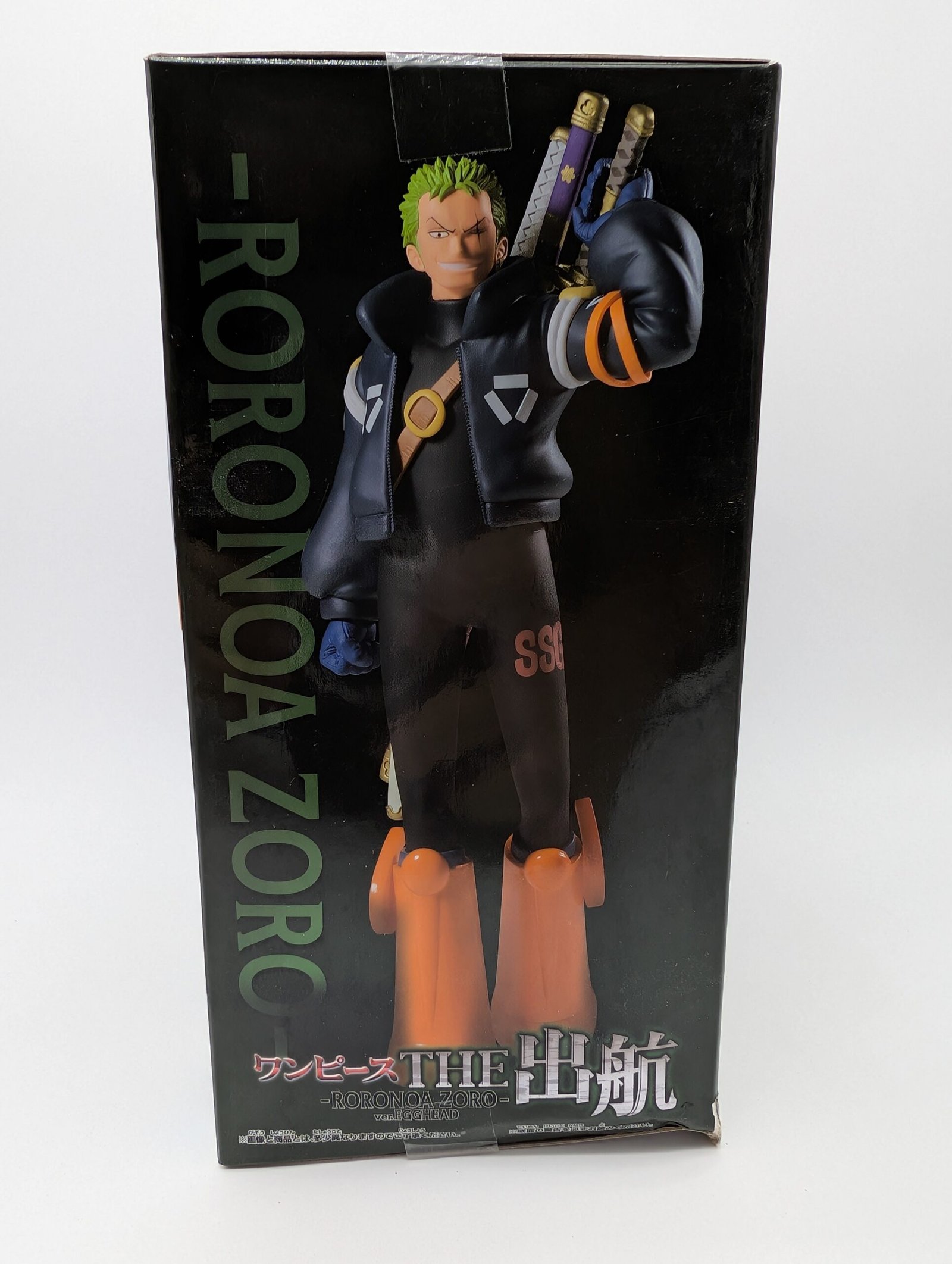 Figura coleccionable de la línea The Shukko de Banpresto, basada en Roronoa Zoro de One Piece, en la versión Egghead, ideal para los fanáticos de la serie