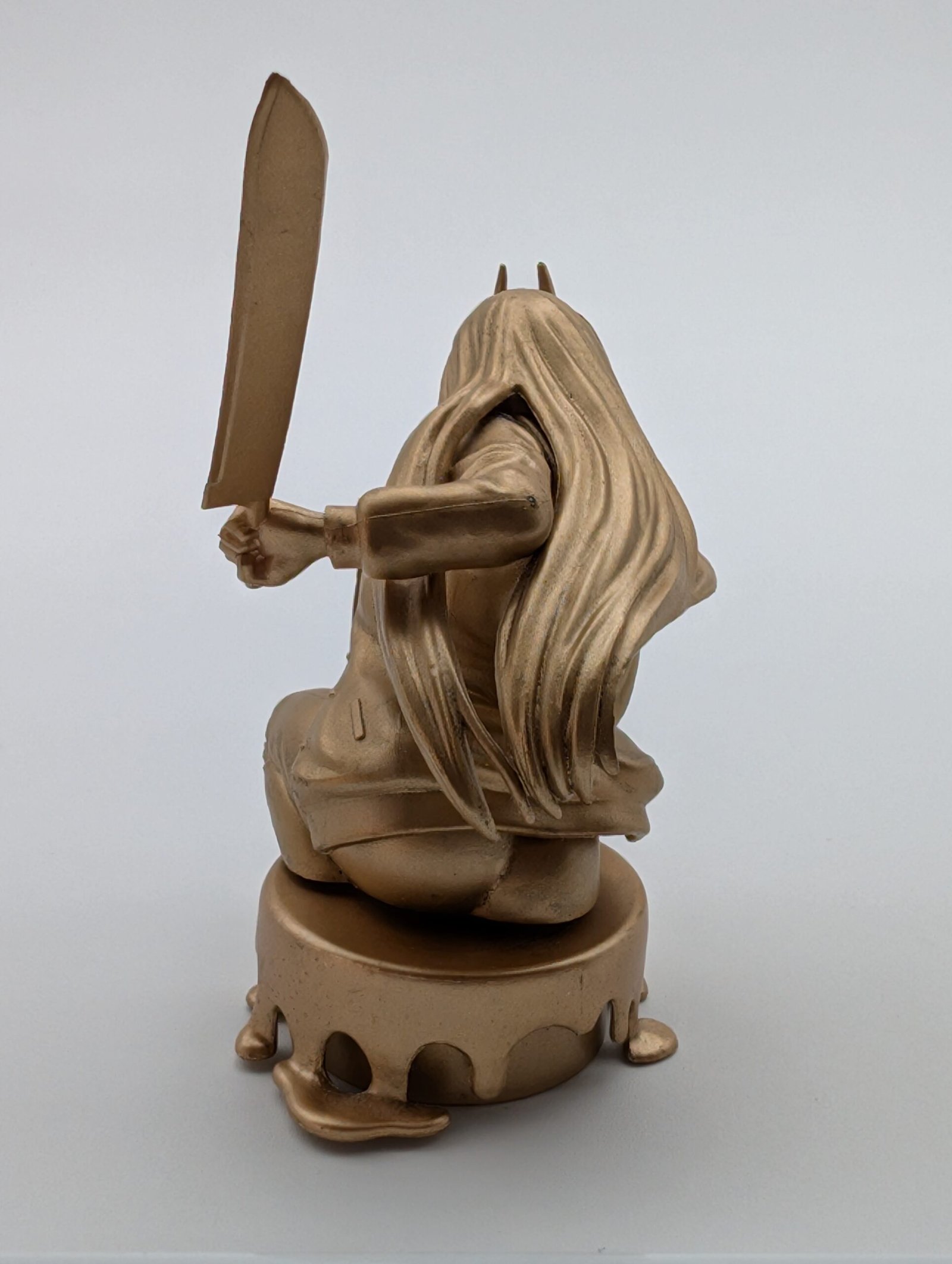 Figura de Power en su versión dorada, parte de la colección Bust Up Masters de F-Toys. Con un acabado metálico que la hace destacar entre cualquier exhibición, esta figura coleccionable es perfecta para fanáticos del anime y coleccionistas que buscan una pieza única y de edición especial. Hecha en PVC de alta calidad, combina estilo y detalle en un tamaño compacto ideal para mostrar en escritorios, estanterías o vitrinas.
