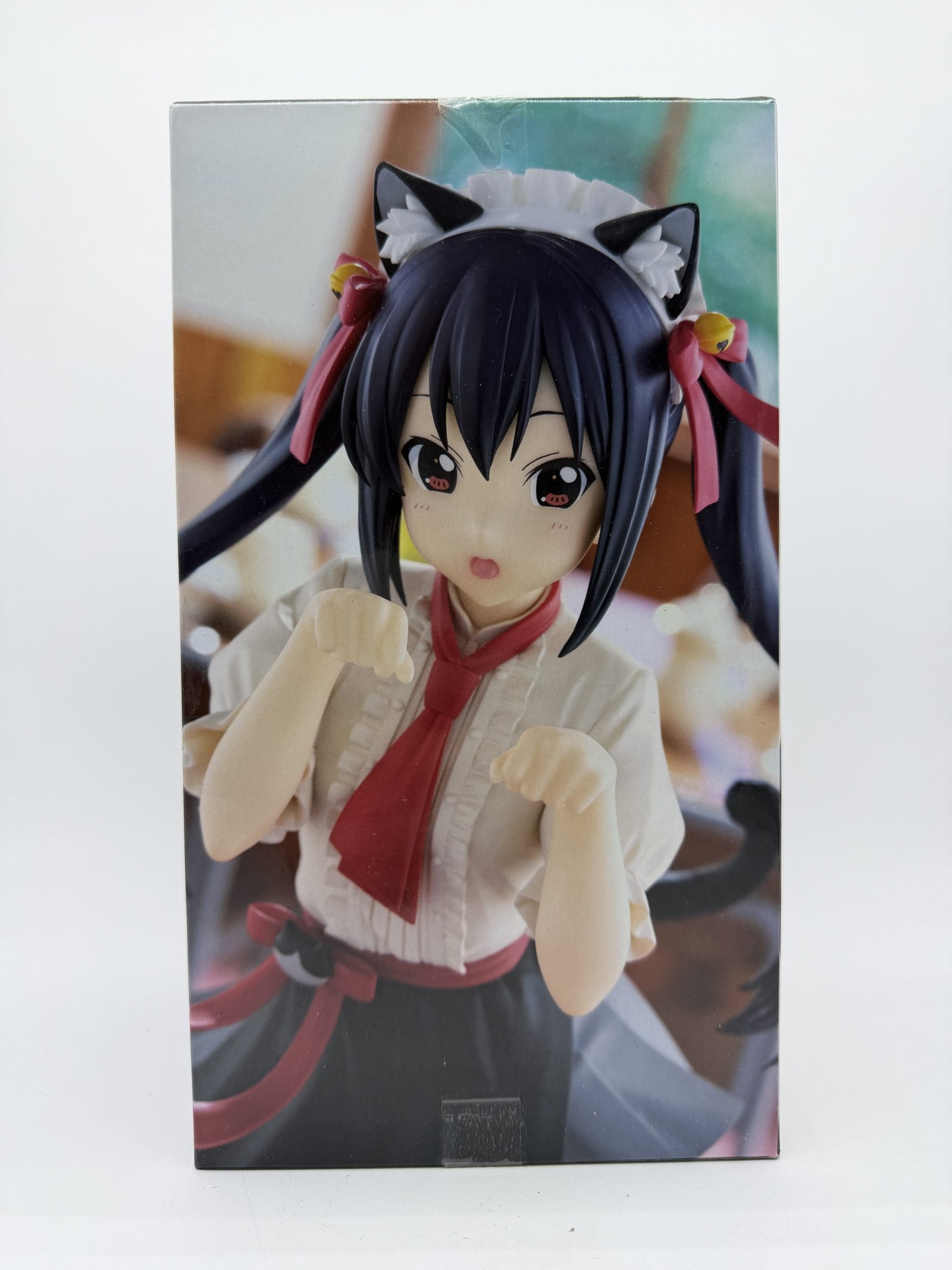 La figura de FuRyu presenta a Azusa Nakano en su versión Nekomimi, perteneciente a la línea Trio-Try-iT Figure de la colección K-ON!, con un diseño que combina su uniforme escolar con adorables accesorios de orejas de gato inspirados en un concepto tipo café temático.