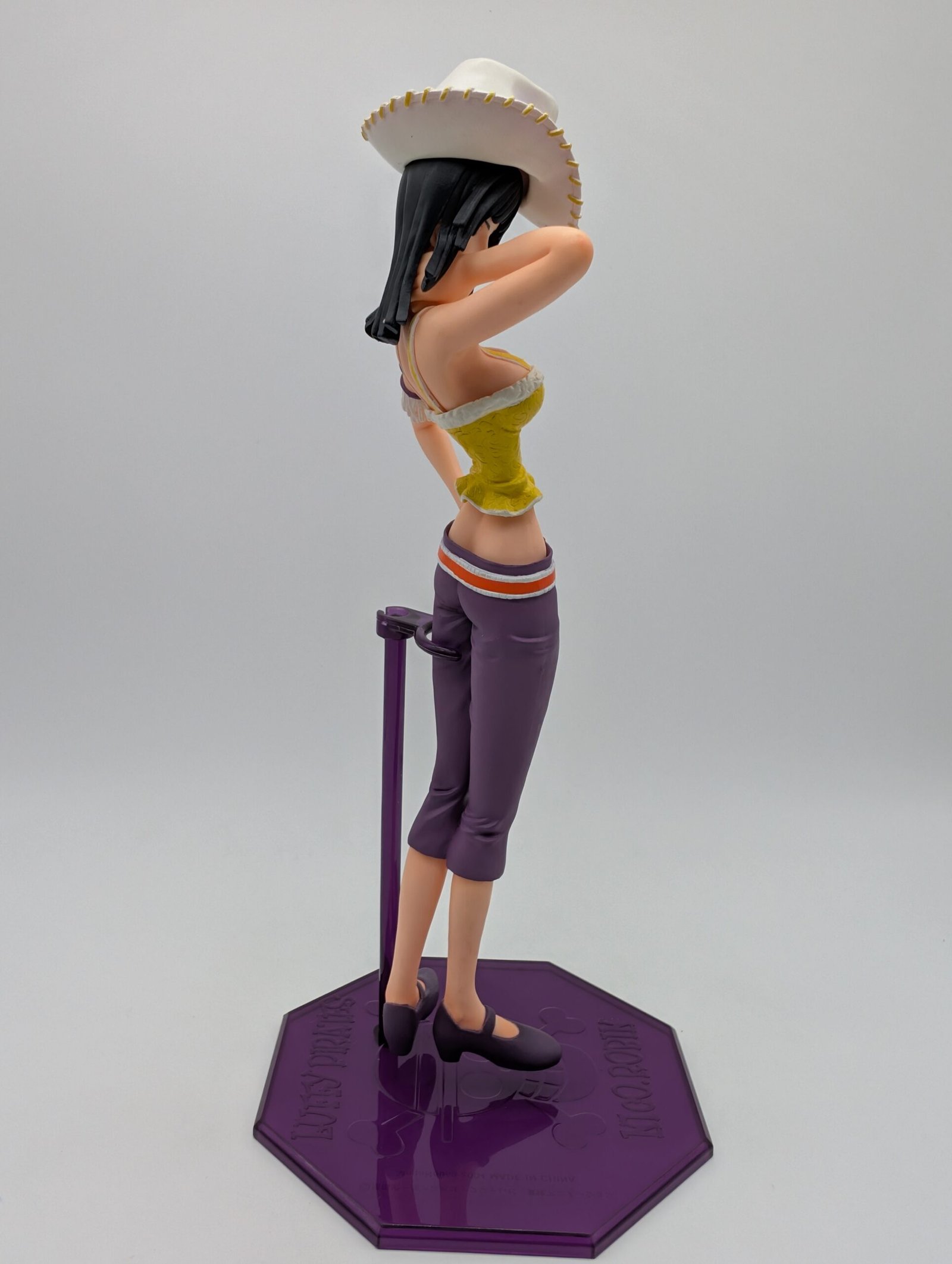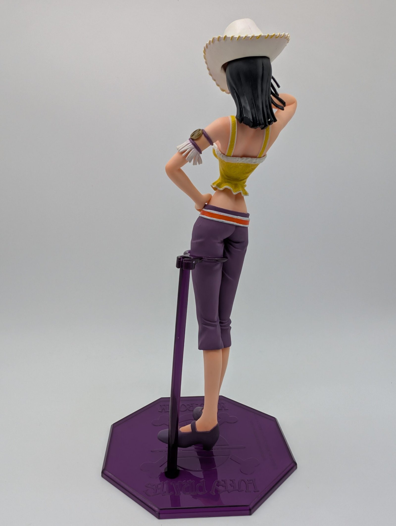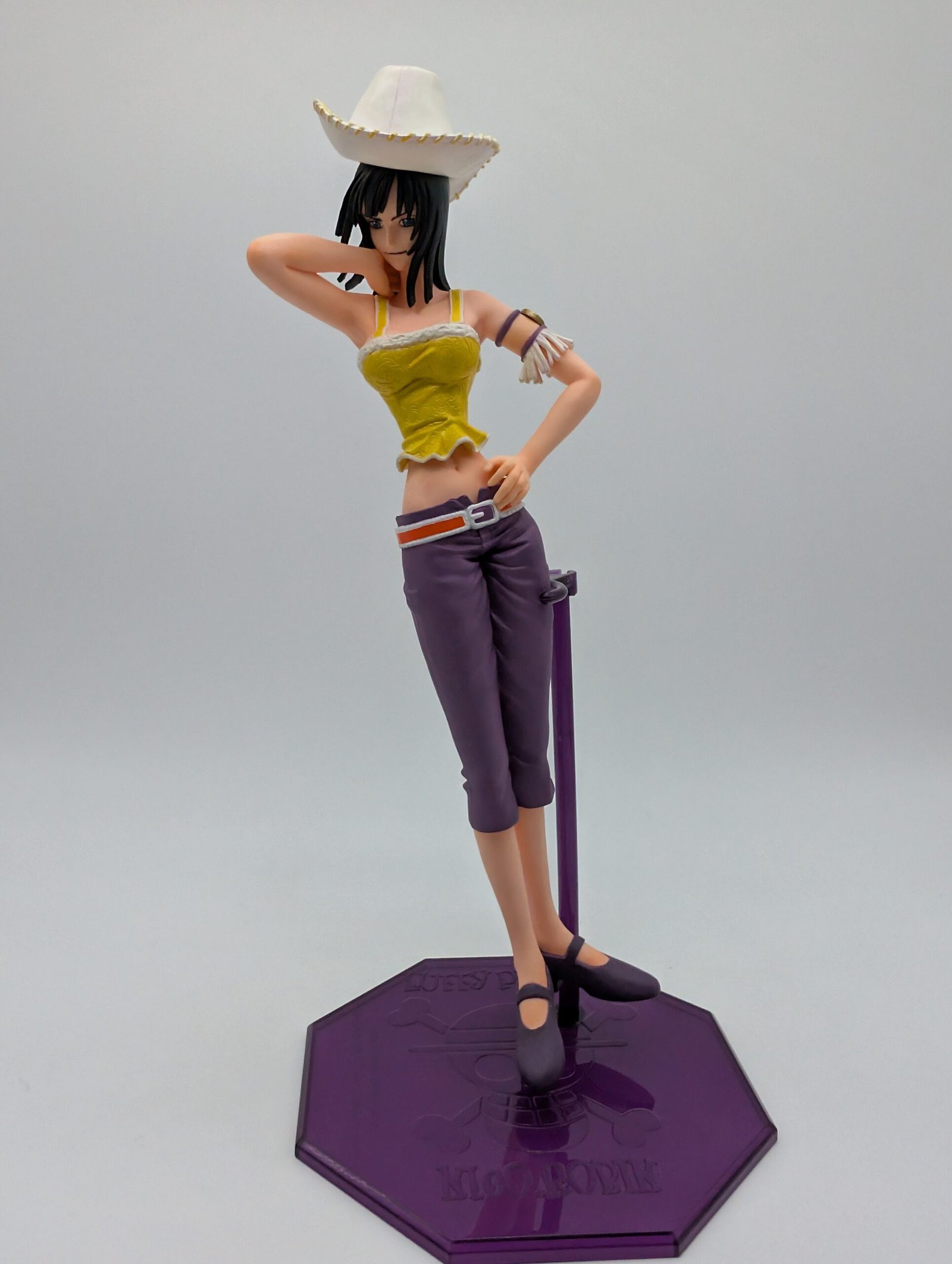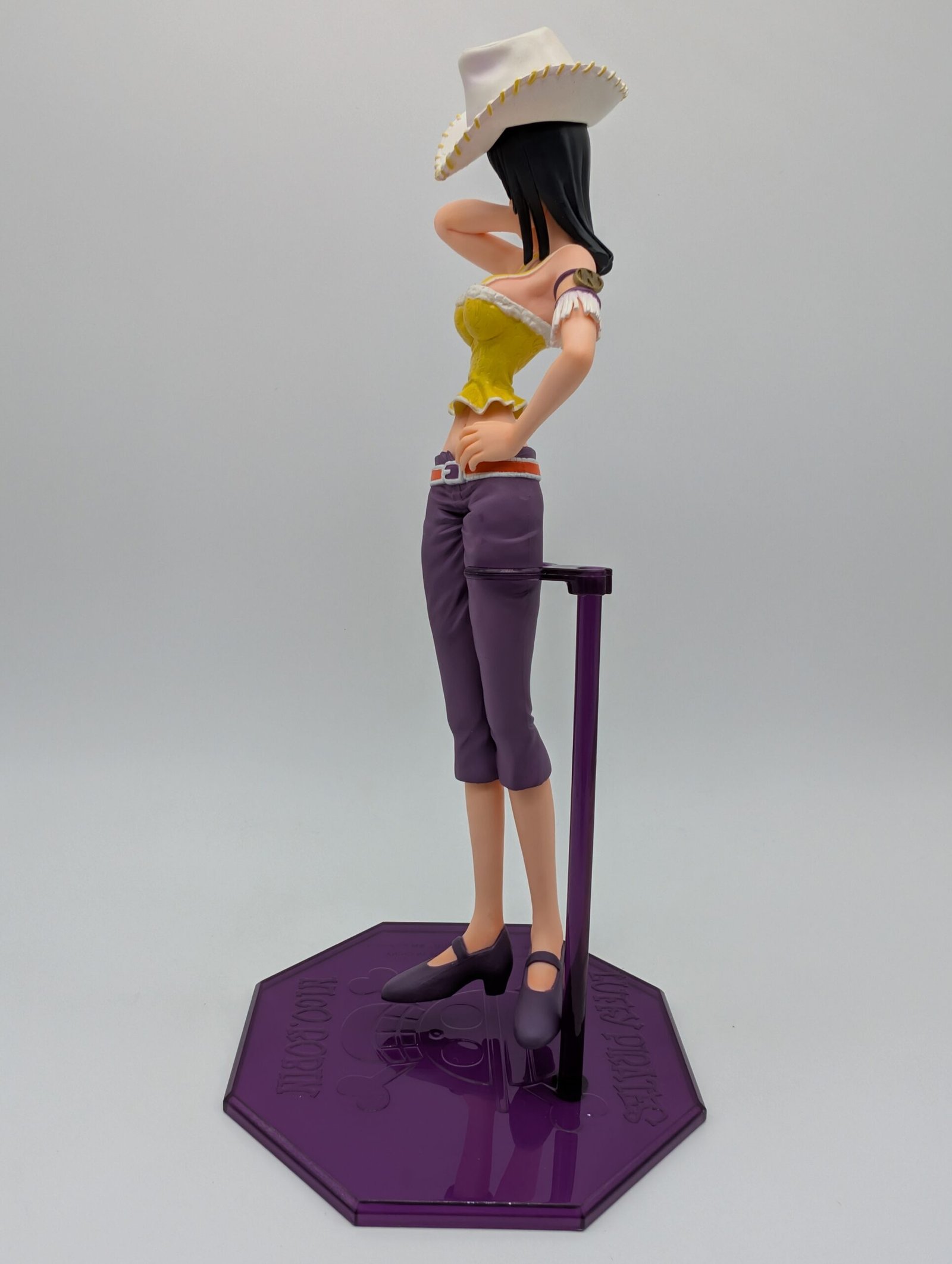 La figura de MegaHouse en la línea P.O.P. Neo‑5 presenta a Nico Robin en su icónico atuendo de estilo tribal junto a un elegante sombrero blanco que puede exhibirse por separado, capturando perfectamente su esencia arqueóloga en plena acción.