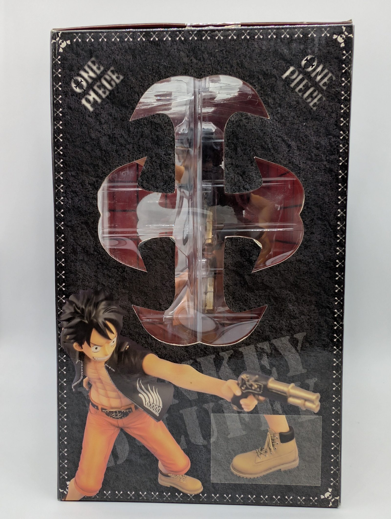La figura de PLEX presenta al valiente Monkey D. Luffy en su estilizada versión The Three Musketeers Ver.(Sanjuushi Ver.), luciendo un impetuoso porte y acompañado del emblemático estilo de la colección Door Painting Collection Figure de One Piece.