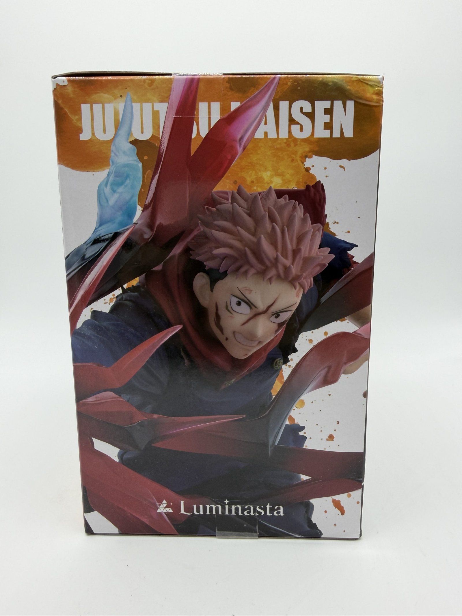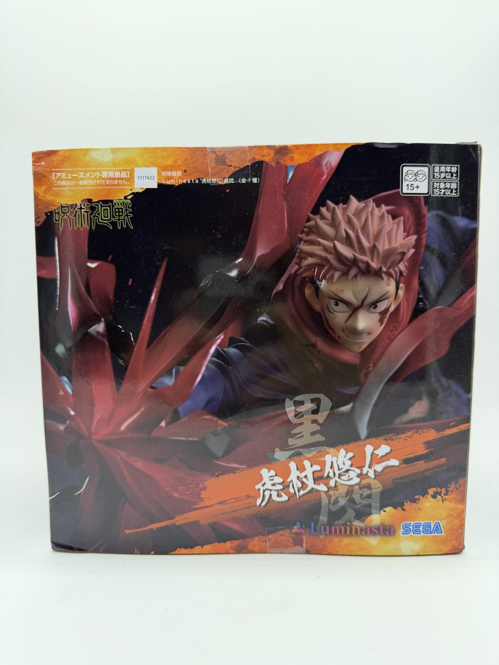 La figura de Sega presenta a Yuji Itadori en su versión Black Flash (Koku-sen) dentro de la línea Luminasta, capturando una pose de combate intensa con efectos visuales que representan el impacto de su técnica especial, fiel al estilo del anime Jujutsu Kaisen.