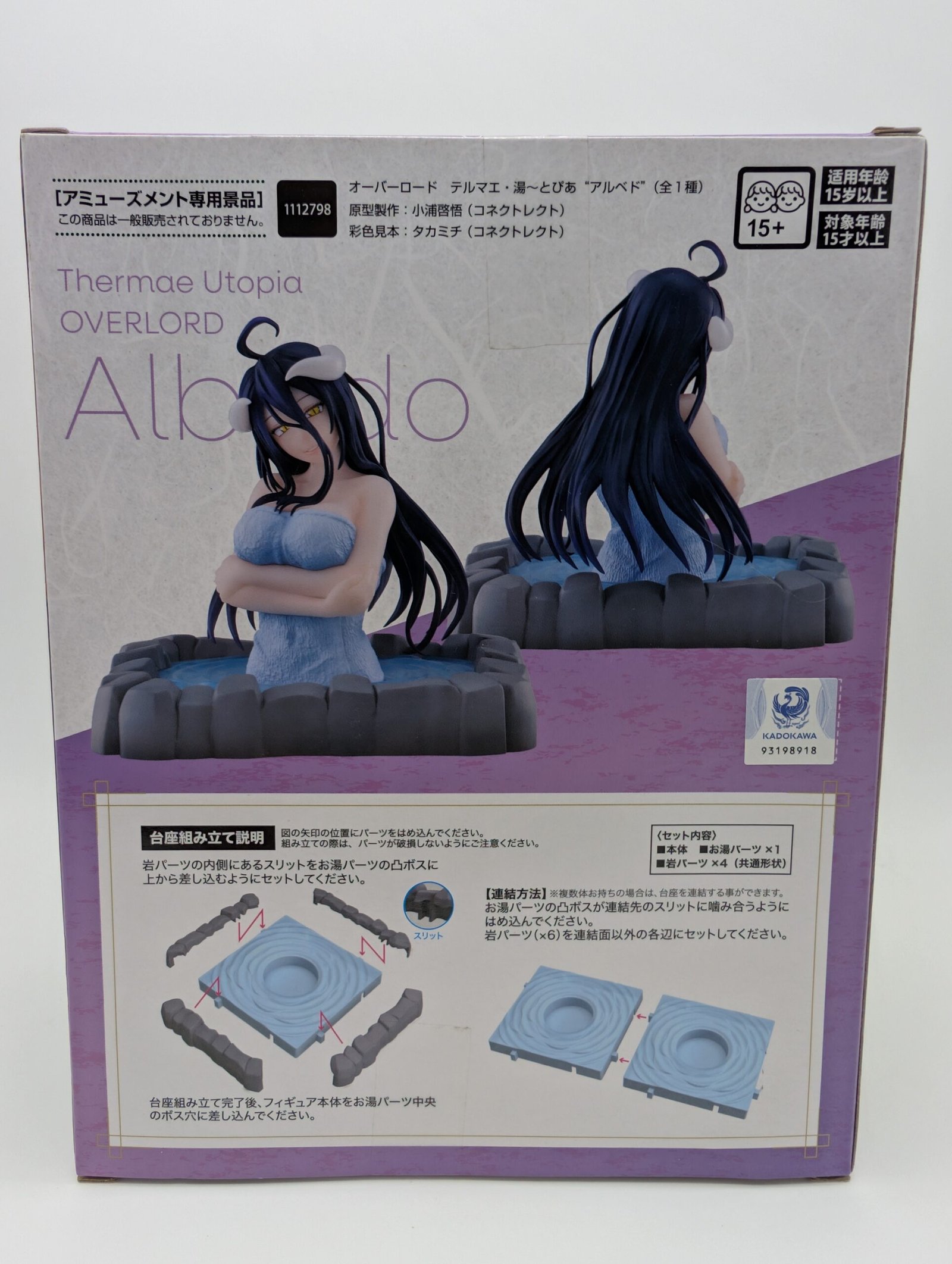 La figura de Sega de la línea Thermae Yu~topia muestra a Albedo, uno de los personajes más icónicos del anime Overlord. Con una base única que simula una bañera o piscina, esta pieza es ideal para los coleccionistas y fanáticos del anime que buscan un detalle exclusivo y elegante en su vitrina.