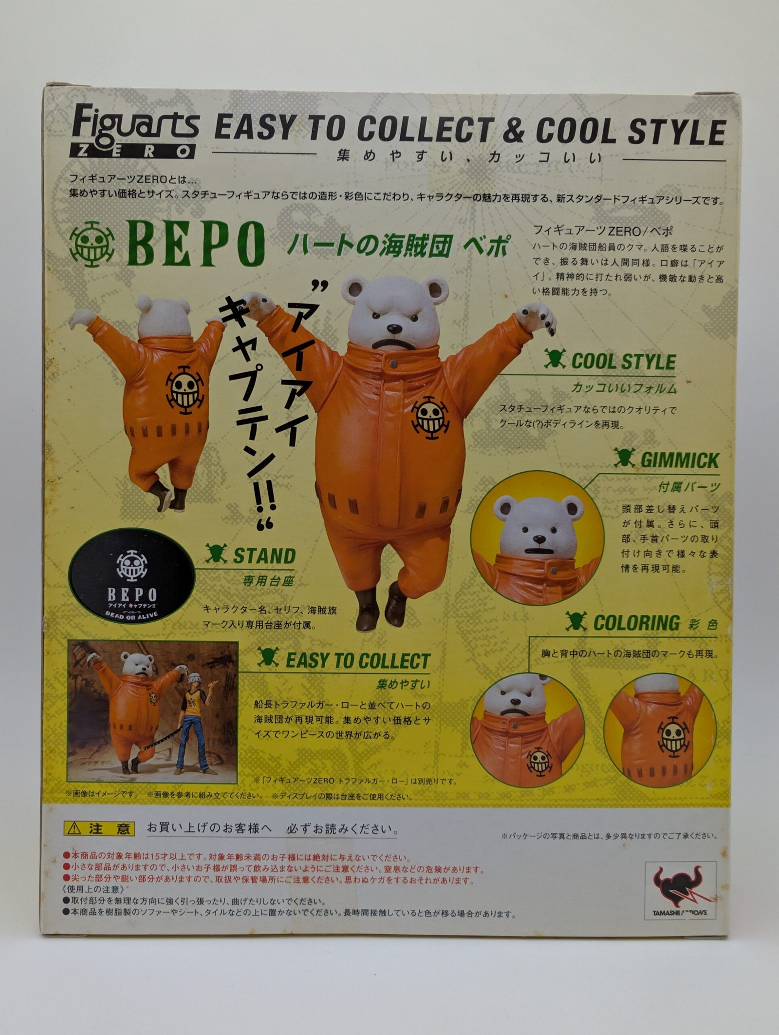 La figura de Tamashii Nations Figuarts ZERO reúne todos los detalles del adorable oso de la tripulación del Corazón con expresividad en su rostro y postura dinámica. Ideal para fans de One Piece, esta pieza captura la esencia de Bepo.
